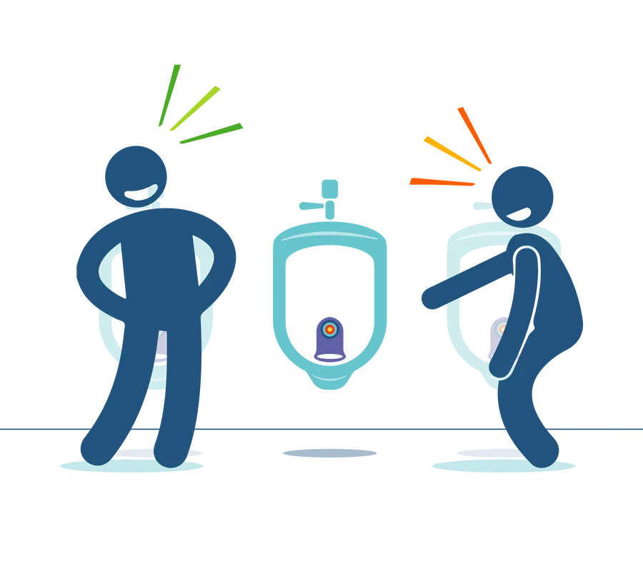 HotShot helps men stay sharp and sanitized while making their time in the restroom an entertaining experience.