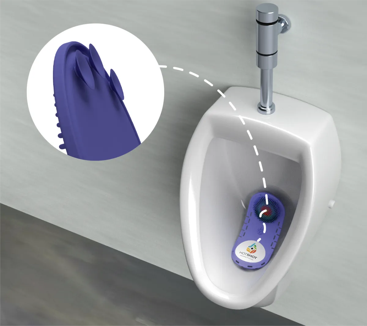 HotShot’s unique rubber shape suctions to the back of any urinal, offering an enticing target.